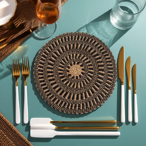 Stylish placemats, particularly handwoven ones, add incredible texture to your dining room table decor.