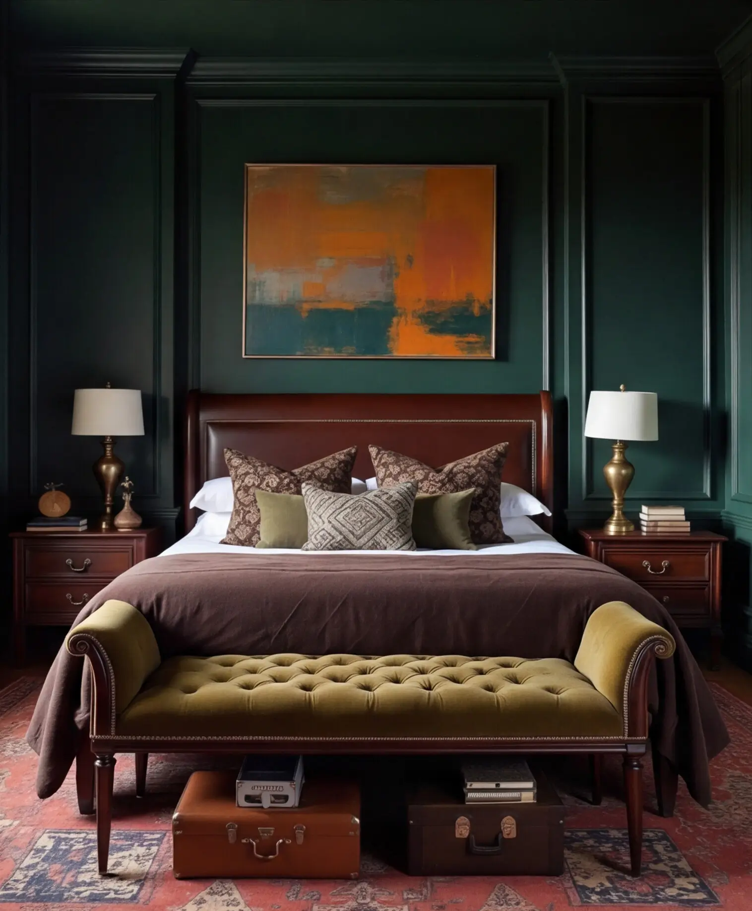 Sartorial details: Display ceramic vessels, brass candlesticks, vintage accessories. Treat your room like a well-dressed gentleman treats his wardrobe—curated and considered.