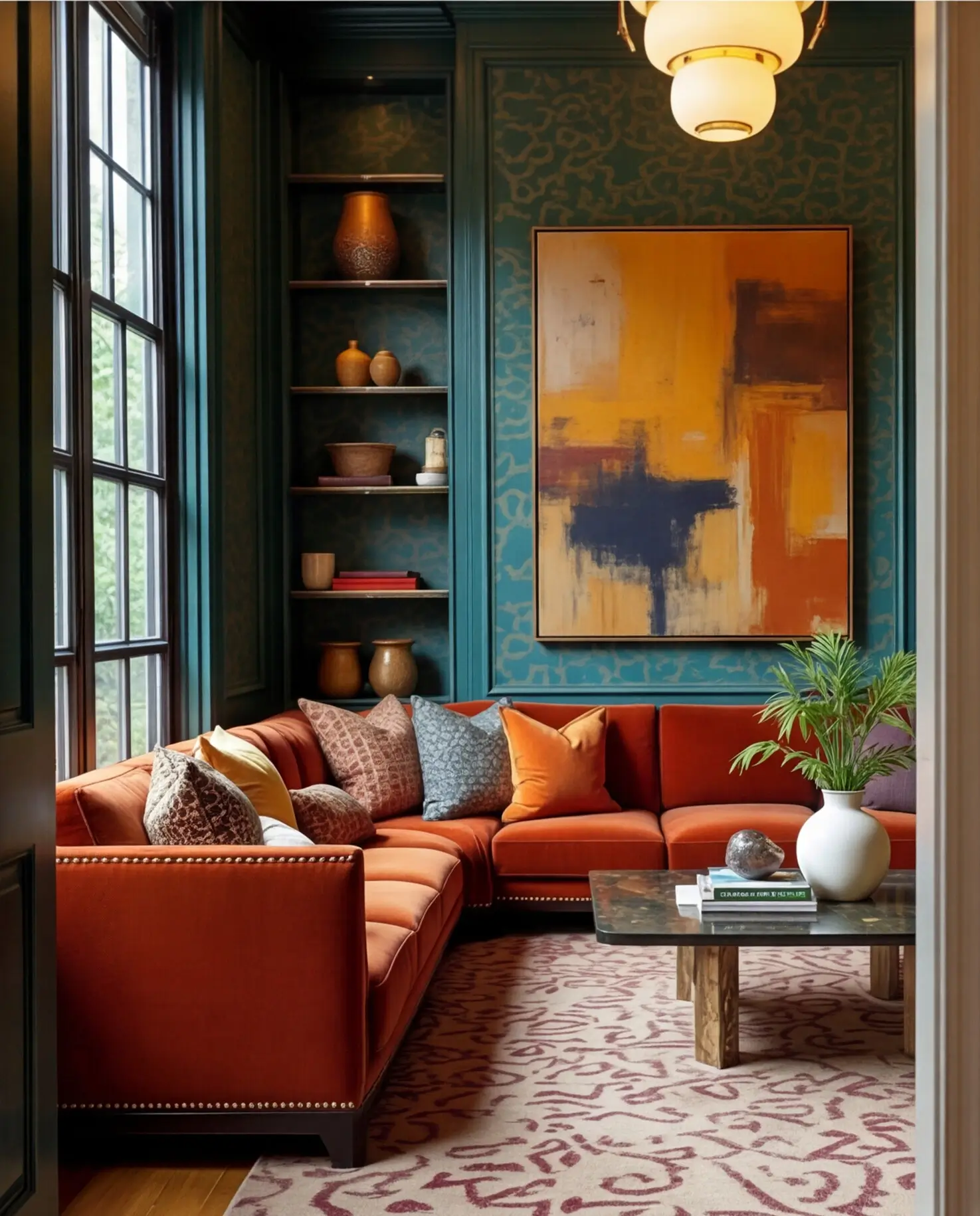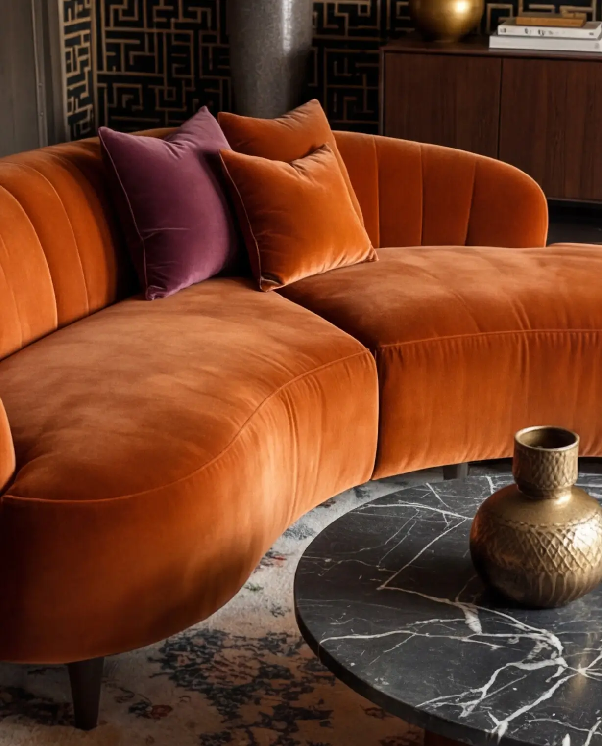 Velvet, linen, brass, marble: Layer textures for richness. Velvet sofas, linen cushions, brass hardware, wooden pieces with gorgeous grain. Create tactile interest at every turn.