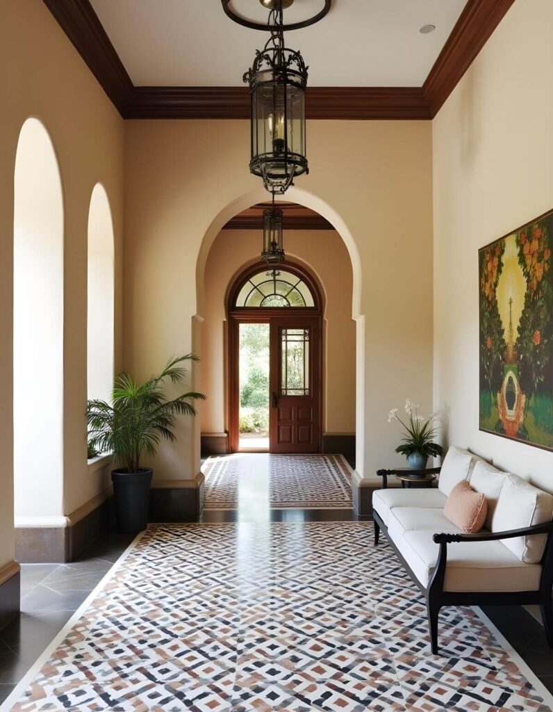 - Entryways with tiled steps or patterned floors